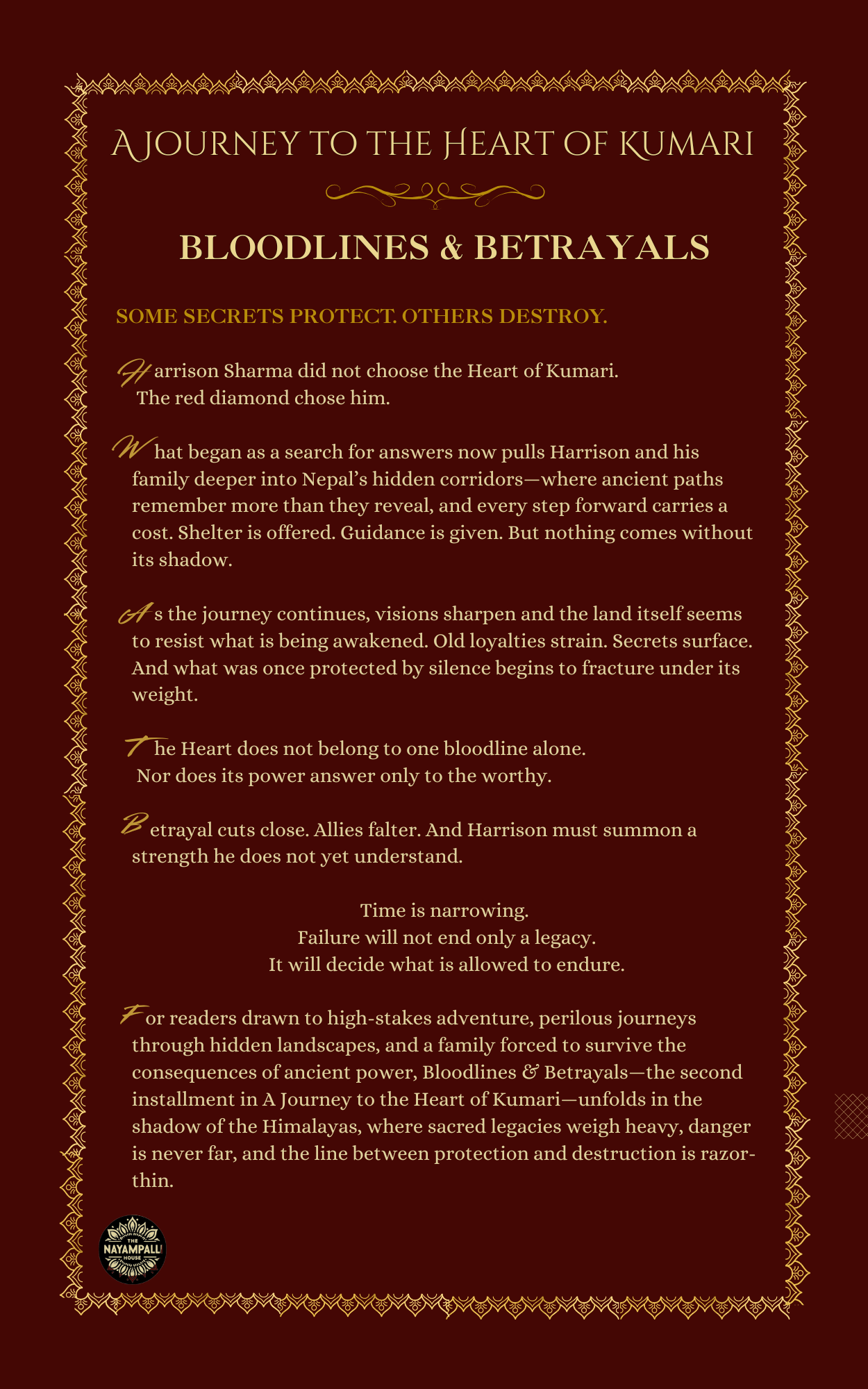 But fate is not so easily embraced. As the Spirit of Kumari unveils the true location of the Heart, buried deep in the perilous Kanchenjunga mountains, the Sharmas must make an impossible choice—continue their journey toward an uncertain destiny, or risk everything to defy it.